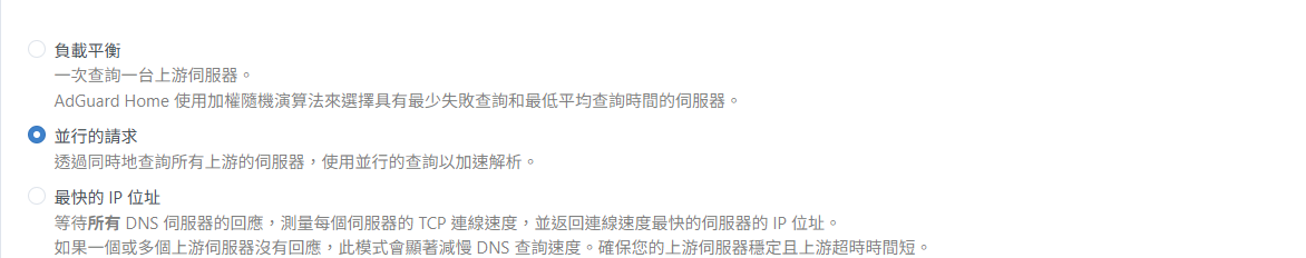 上游DNS伺服器新增,並選擇並行請求加快解析
