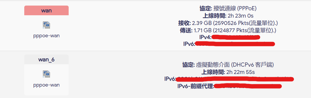 儲存套用設定後,會出現DHCPv6 客戶端虛擬介面,確認有取得IPv6-前綴代理
