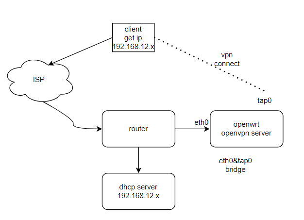 新增server設定,這裡使用tap bridge為範例,編輯/etc/config/openvpn