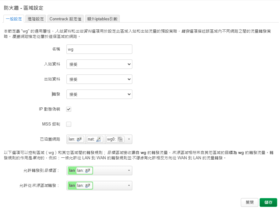 編輯新增的防火牆設定wg