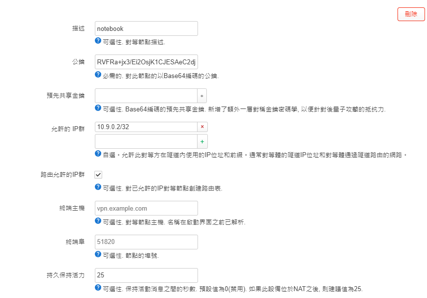 10.9.0.2/32 客戶端IP