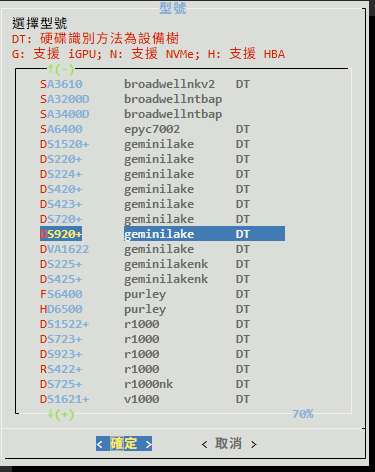 型號自行選擇,這裡使用DS920+,自行選擇版本