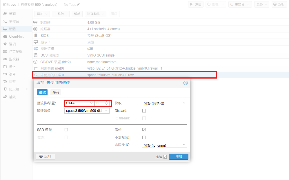 虛擬機有出現剛剛導入的映像檔,選擇SATA